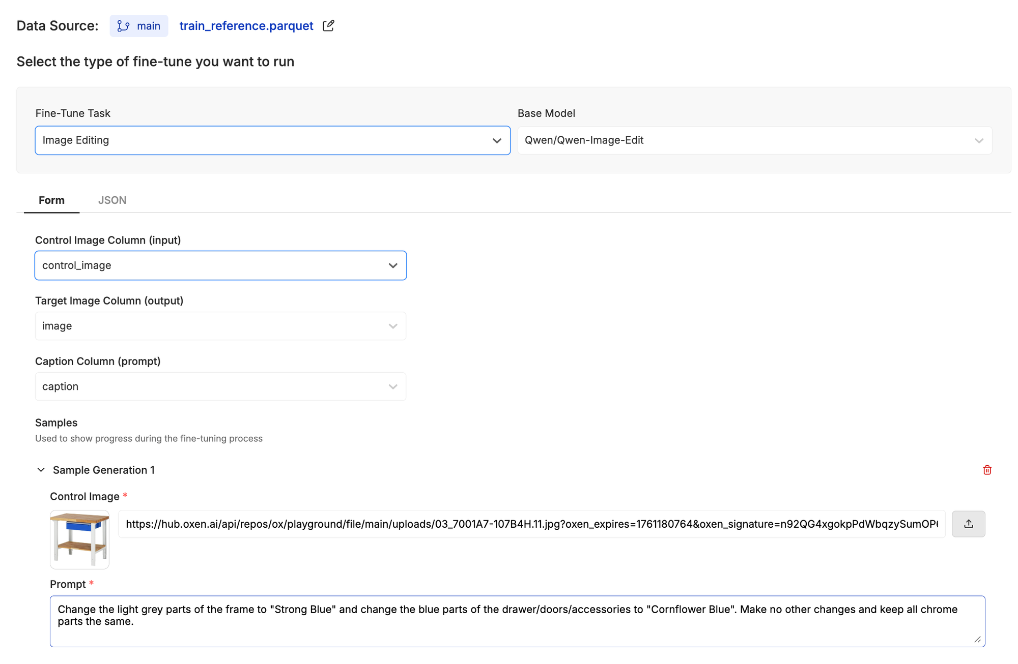 Once you have a dataset uploaded to Oxen.ai, you can kick off a fine-tune with a few clicks.